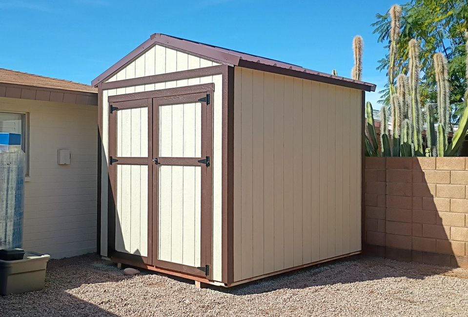 What materials do you use? We use high-quality materials to ensure your shed is durable and built to withstand Arizona’s climate. This includes sturdy wood frames, weather-resistant finishes, and roofing materials designed for longevity.